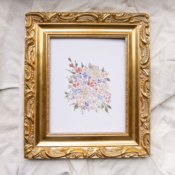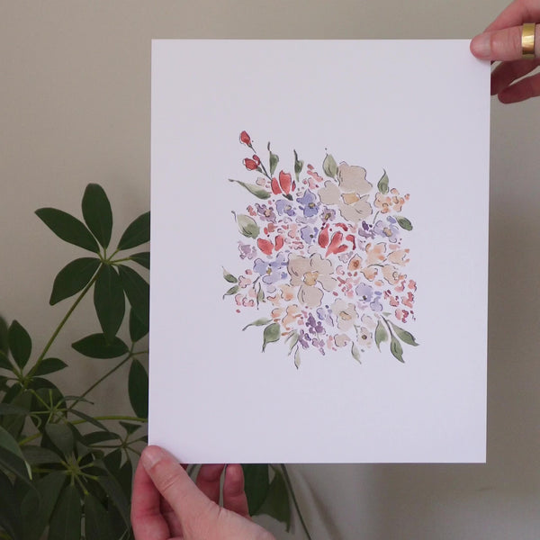 This print features a bouquet inspired by the flowers of Annecy. It is a watercolor piece featuring pen accents, similar to the style of Beatrix Potter, this piece's namesake. It's available in three sizes and printed on beautiful linen Fine Art paper.
