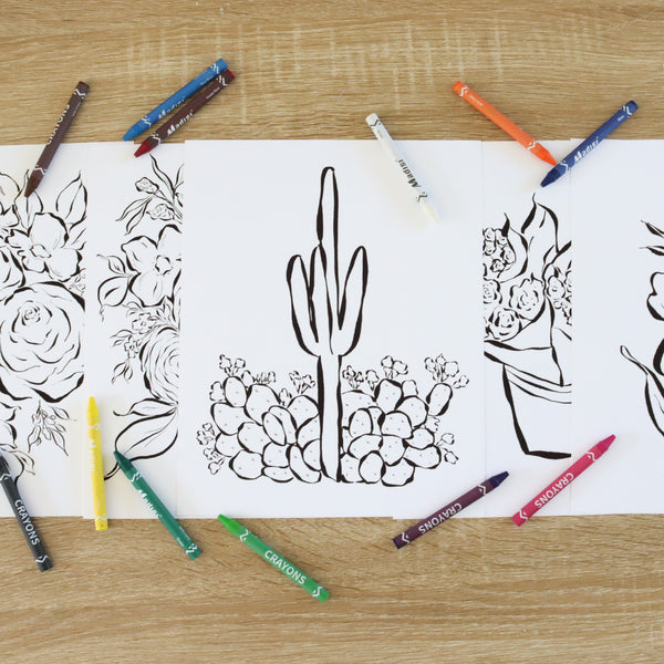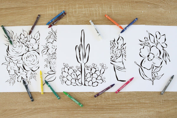 This is a set of five different coloring pages. Each design is inspired by one of my fine watercolor paintings and printed onto fine art paper. Each of these pages can be used by anyone of any age, and can truly turn into works of art to frame or to be proudly displayed on fridges for years to come.
